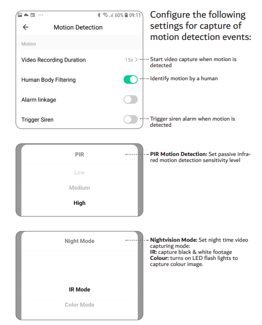 Question: What settings can I adjust on my Connect SmartHome 2K Outdoor Camera?
